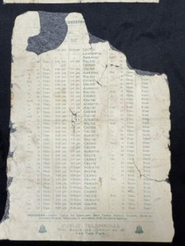 „Diese Liste weist Spuren davon auf, dass sie im Nordatlantik versunken war und zusammen mit den Habseligkeiten von Herrn Sutton geborgen wurde“, so das Auktionshaus.